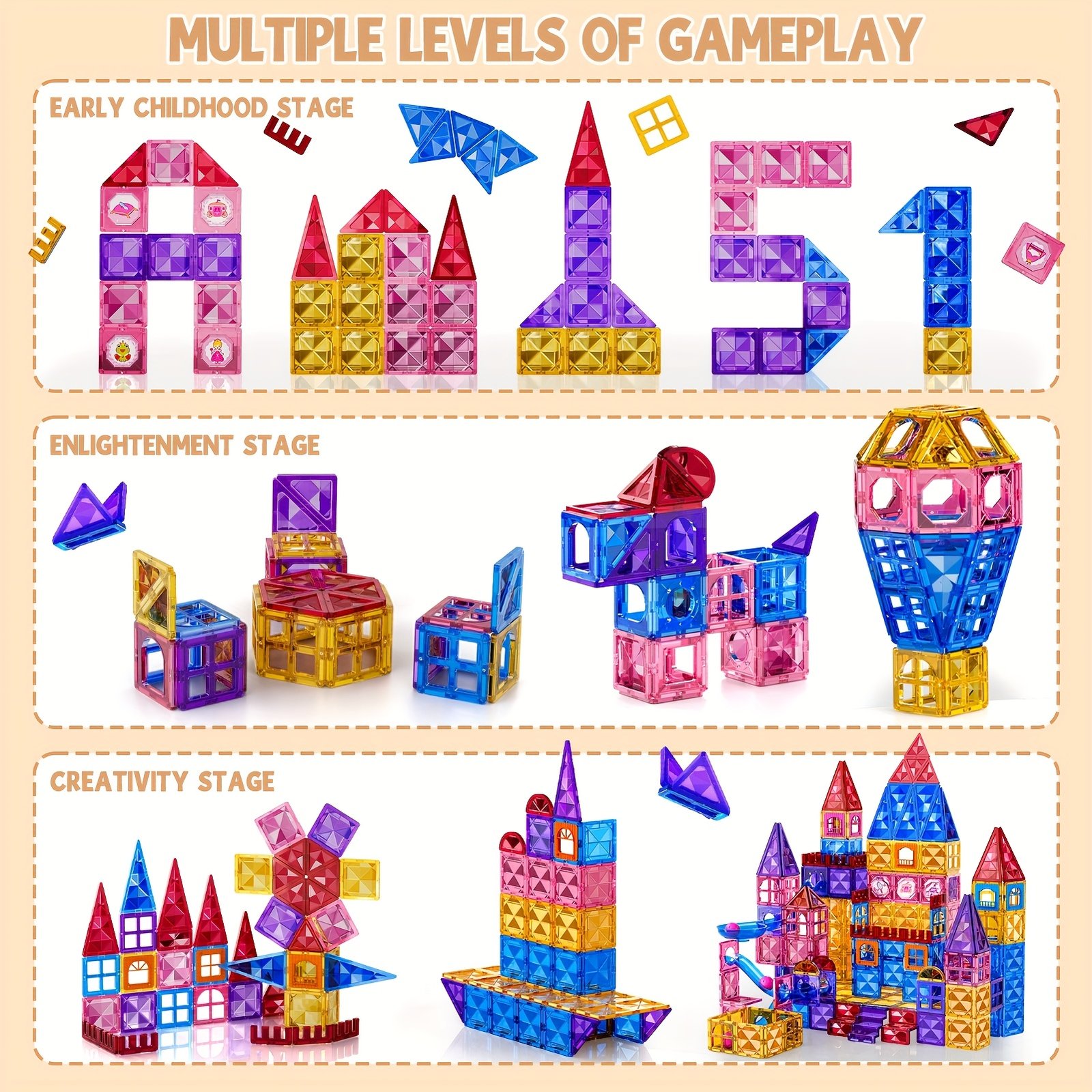 Stronger Magnets, Bigger Builds: Equipped with premium, strong magnets to ensure that tall structures stay standing without frustrating collapses.